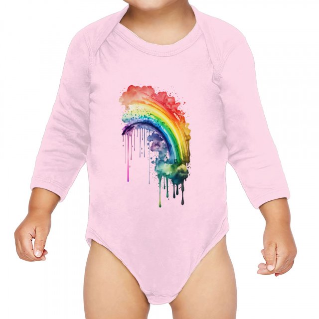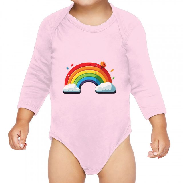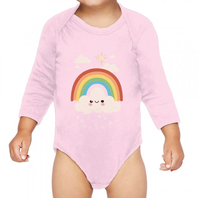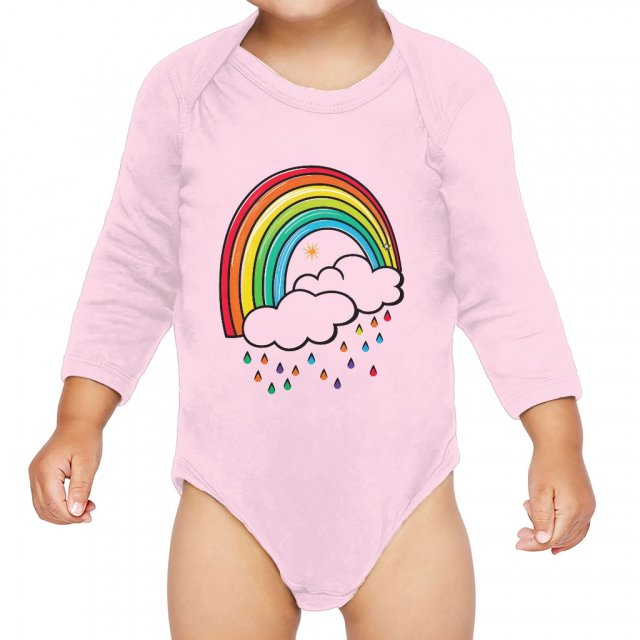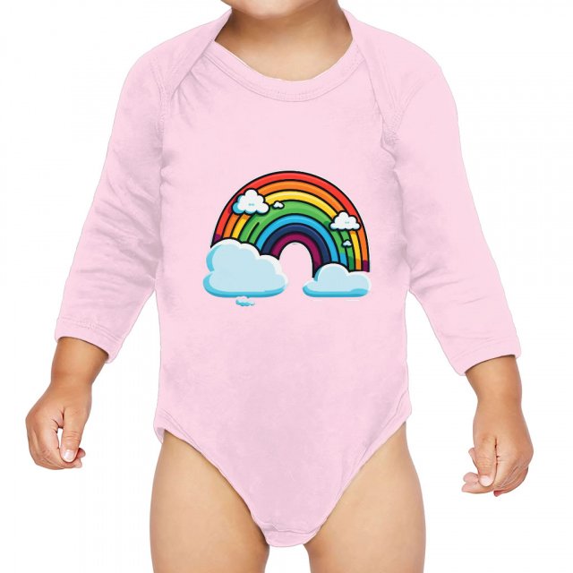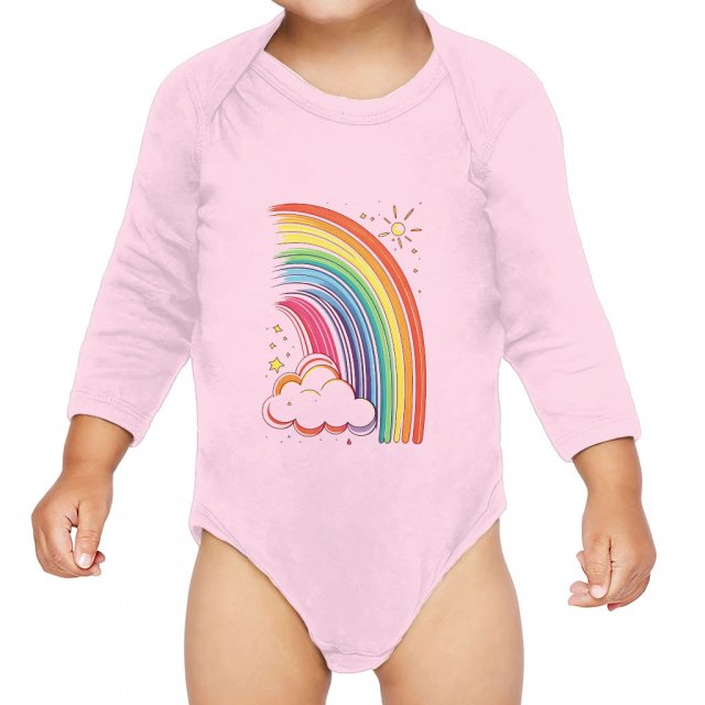 Rainbow Print Baby Long Sleeve Onesie – Cute Baby Long Sleeve Bodysuit – Illustration Baby One-Piece
