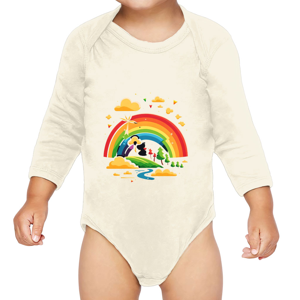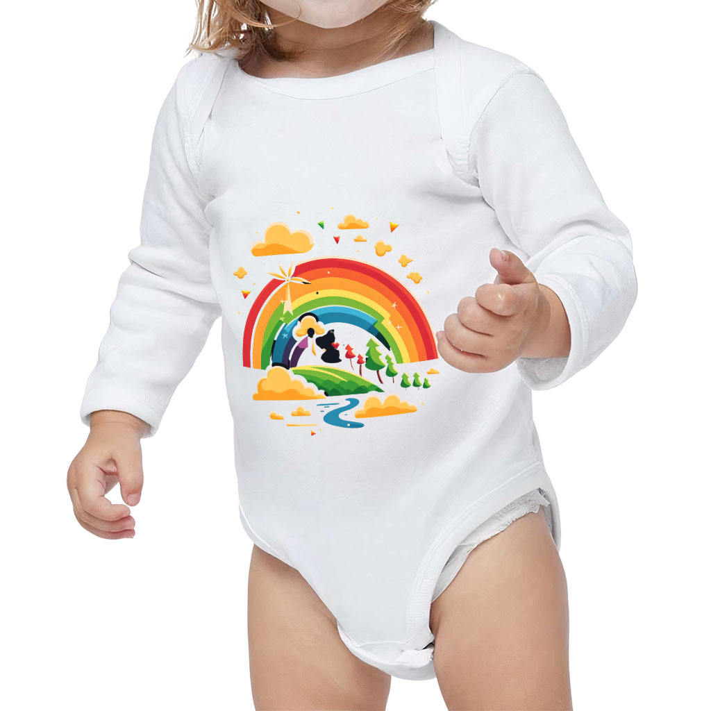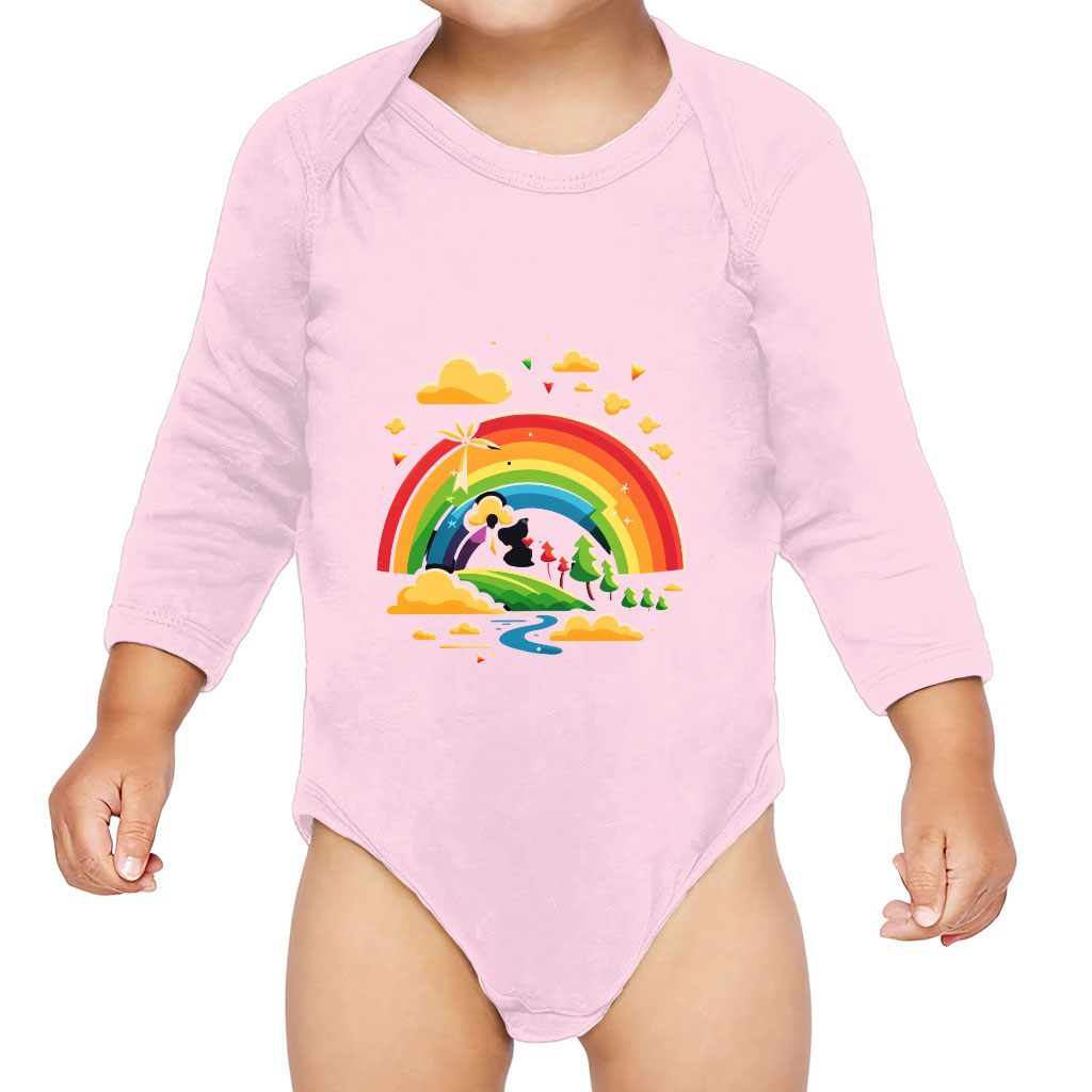 Rainbow Baby Long Sleeve Onesie – Cartoon Design Baby Long Sleeve Bodysuit – Cute Art Baby One-Piece