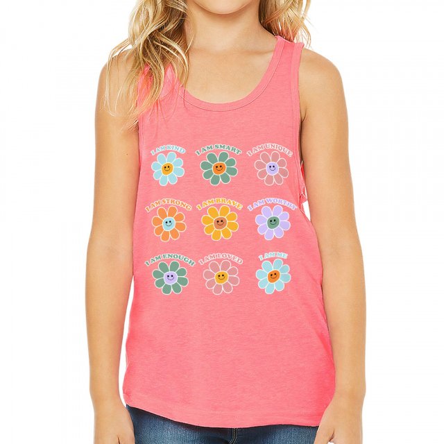 Grow Positive Thoughts Kids’ Jersey Tank – Cute Butterfly Sleeveless T-Shirt – Kawaii Kids’ Tank Top